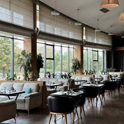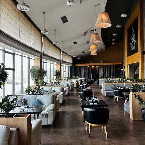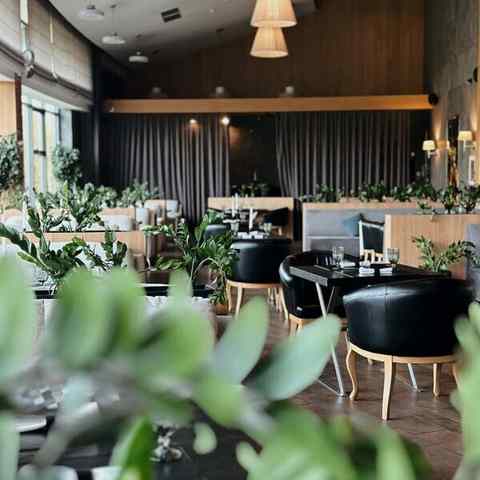 Интерьер в стиле фьюжен и отделка из натуральных материалов вписываются в рамки роскоши и изысканности. Посетителей также порадует вид из панорамных окон: за пределами открывается обзор на Национальную библиотеку. Кроме того, гости могут понаблюдать за тем, как повара готовят любимые блюда, ведь формат ресторана — Openkitchen.