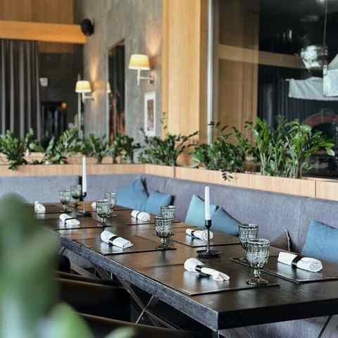 С наступлением летнего сезона для гостей открываются две просторные и уютные террасы, а приемы пищи становятся приятнее на свежем воздухе.